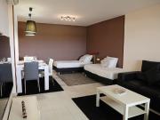 ...apartamento com varanda e capacidade máxima para 4 pessoas (um quarto com cama de casal). O apartamento tem uma casa de banho completa com duche, uma sala de estar / jantar com sofá-cama duplo e uma cozinha equipada com forno e máquina de lavar loiça...