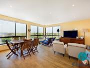...Apartamento Exclusivo com amplos terraços, jacuzzi,localizado no Último Piso com Vista...centro histórico de Lagos e das icónicas Praia D. Ana e Praia dos Estudantes. Banh...inda: Sala open space com vista mar e um grande terraço com linhas arredondadas. U...