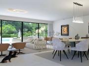 ...ços amplos e zonas exteriores com jardim e piscina. No rés do chão encontram-se as áreas sociais da casa. A sala de estar e jantar abrem-se para um terraço coberto que se prolonga para o jardim e a piscina, que criam um espaço agradável para convívio...